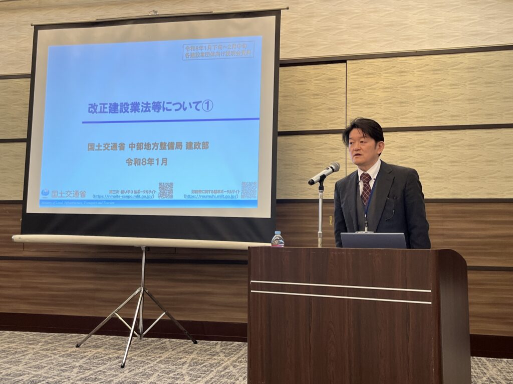 ・「改正建設業法について」国土交通省 中部地方整備局 建政部 建設業適正契約推進官 鈴木森之様